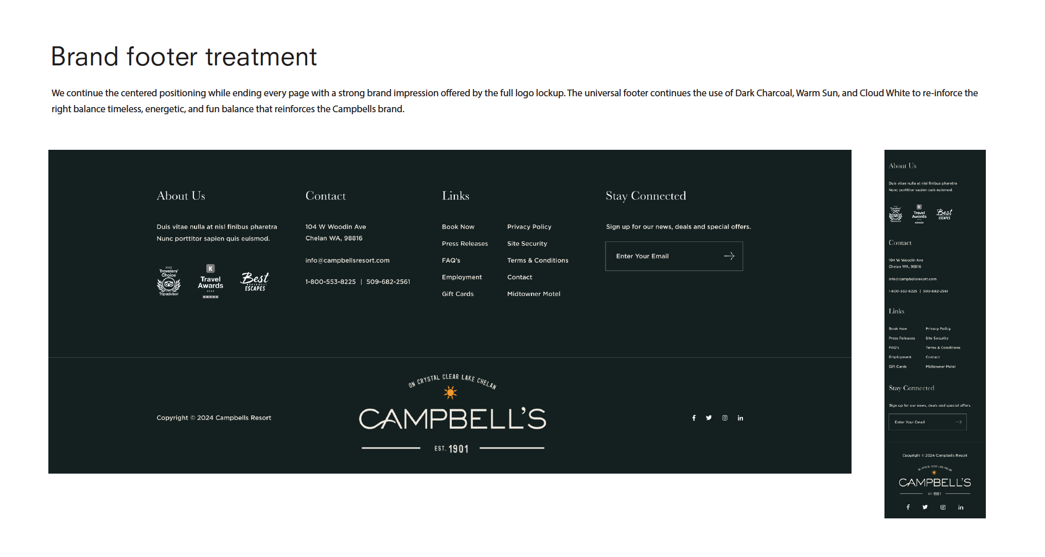 I engaged with the Campbell's Resort owners to strategically kick off a website redesign process that would set the tone for their iconic brand update in advance of their 125 year anniversary. We assessed their current website analytics to surface insights, targeting our key multi-generational persona groups, and setting a new information arhictecture that drive patrons to transact with the website.