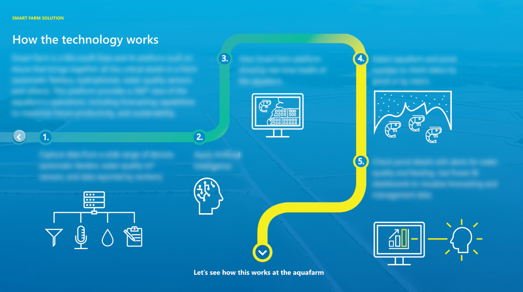 Engaged to created a partner solution demo experience to showcase aqua-farming and how the internet of things (IOT ) is helping increase quality, production and sustainability.