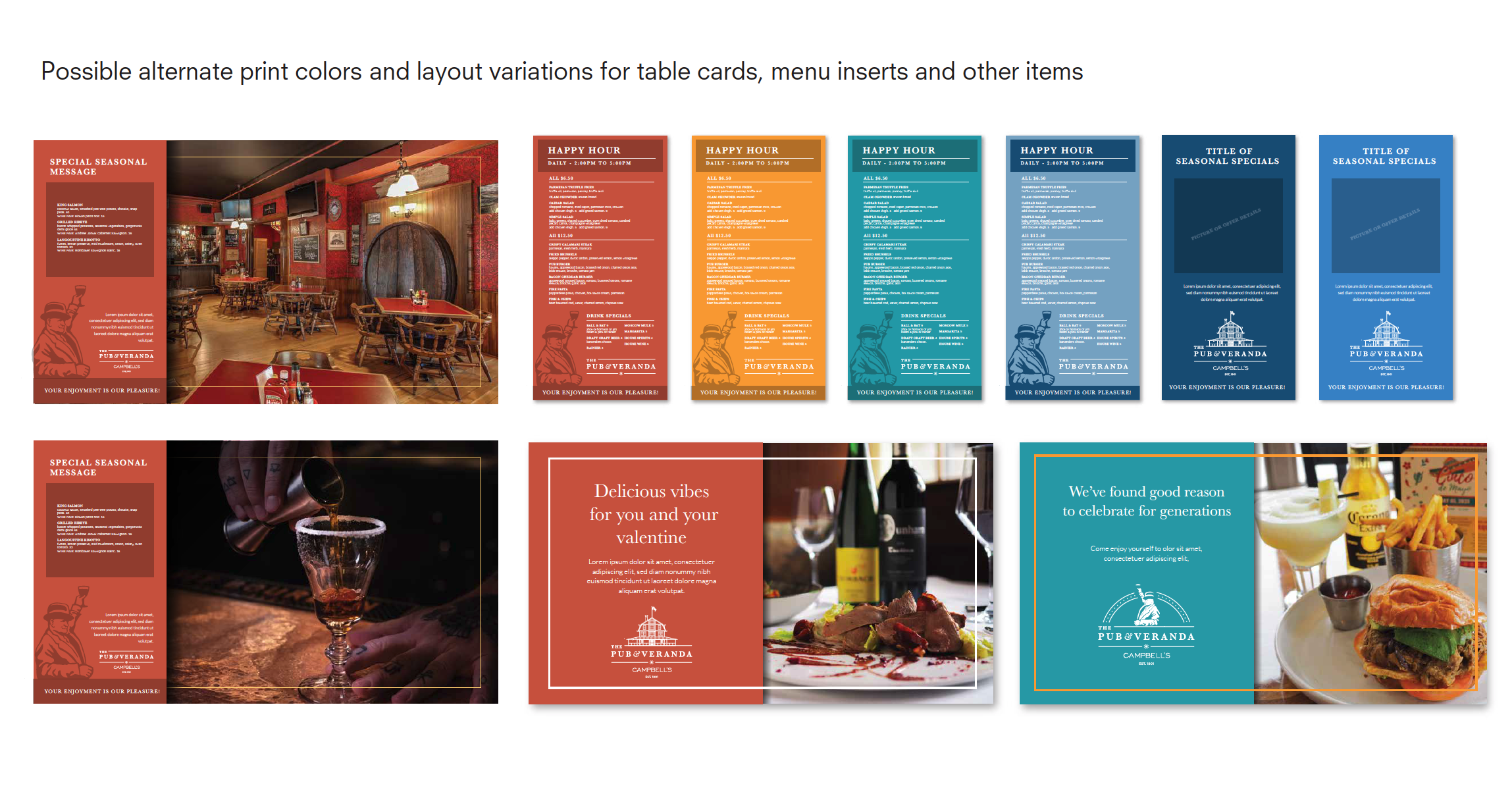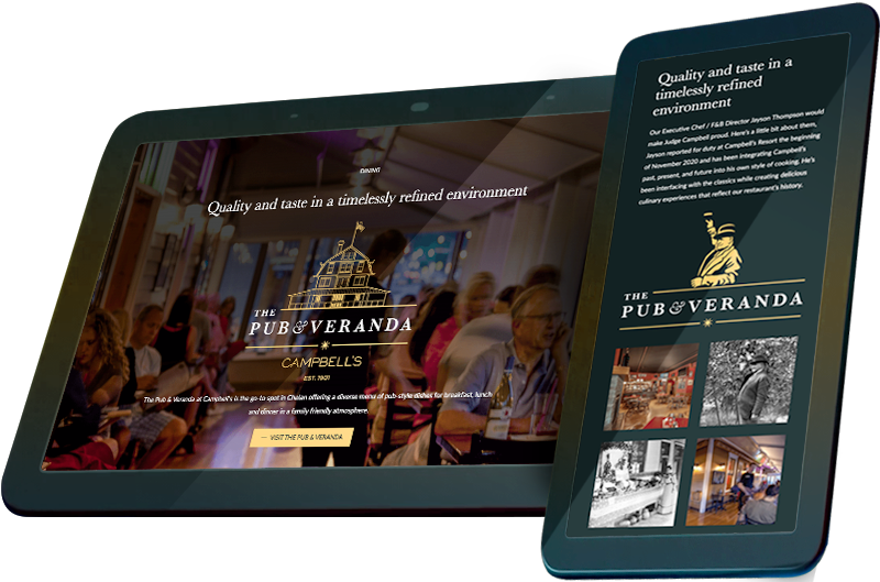 We engaged to created a new food and beverage sub-brand for the dining experience at Campbell's Resort. Working closely with Tom and Mia Campbell, of Campell's Resort, I crafted the updated brand for The Pub & Veranda. The objective was to combine the rich 125 year history of the pub & veranda building, with their timeless culinary experiences in a fun, and inviting family friendly atmosphere.